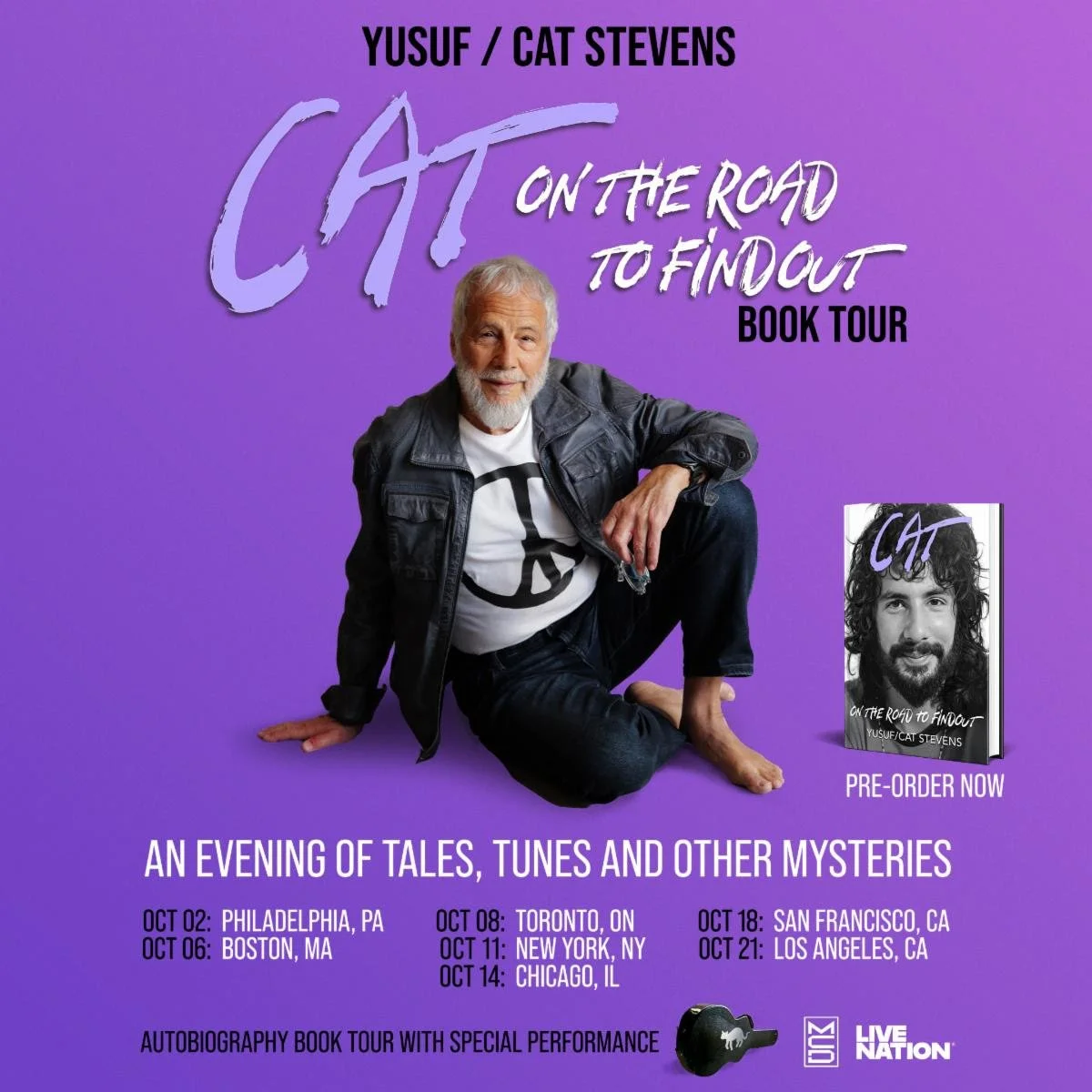 More than a traditional book tour or concert, each evening will find Stevens diving deep into his remarkable life story — from his early days as a chart-topping pop star to his transformative spiritual awakening and enduring influence as a global ambassador for peace. The events will feature an in-depth conversation about the memoir’s themes, trials, and revelations, along with stripped-down, unplugged performances of songs that have defined generations, including timeless classics like “Father and Son,” “Wild World,” and “Moonshadow.”