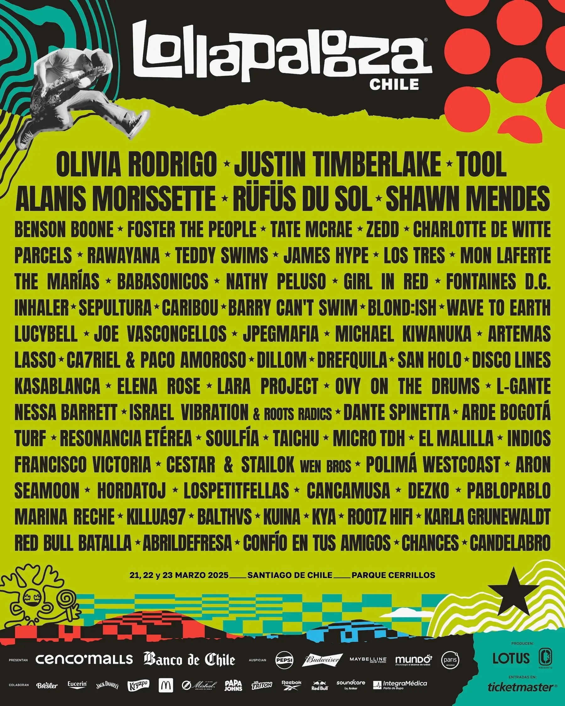 And let’s not forget the legendary energy of the Chilean crowd—widely regarded as one of the most passionate and enthusiastic festival audiences in the world. Whether you’re in the pit, vibing at the back, or discovering your new favorite band, the electric atmosphere at Lolla Chile is unmatched.