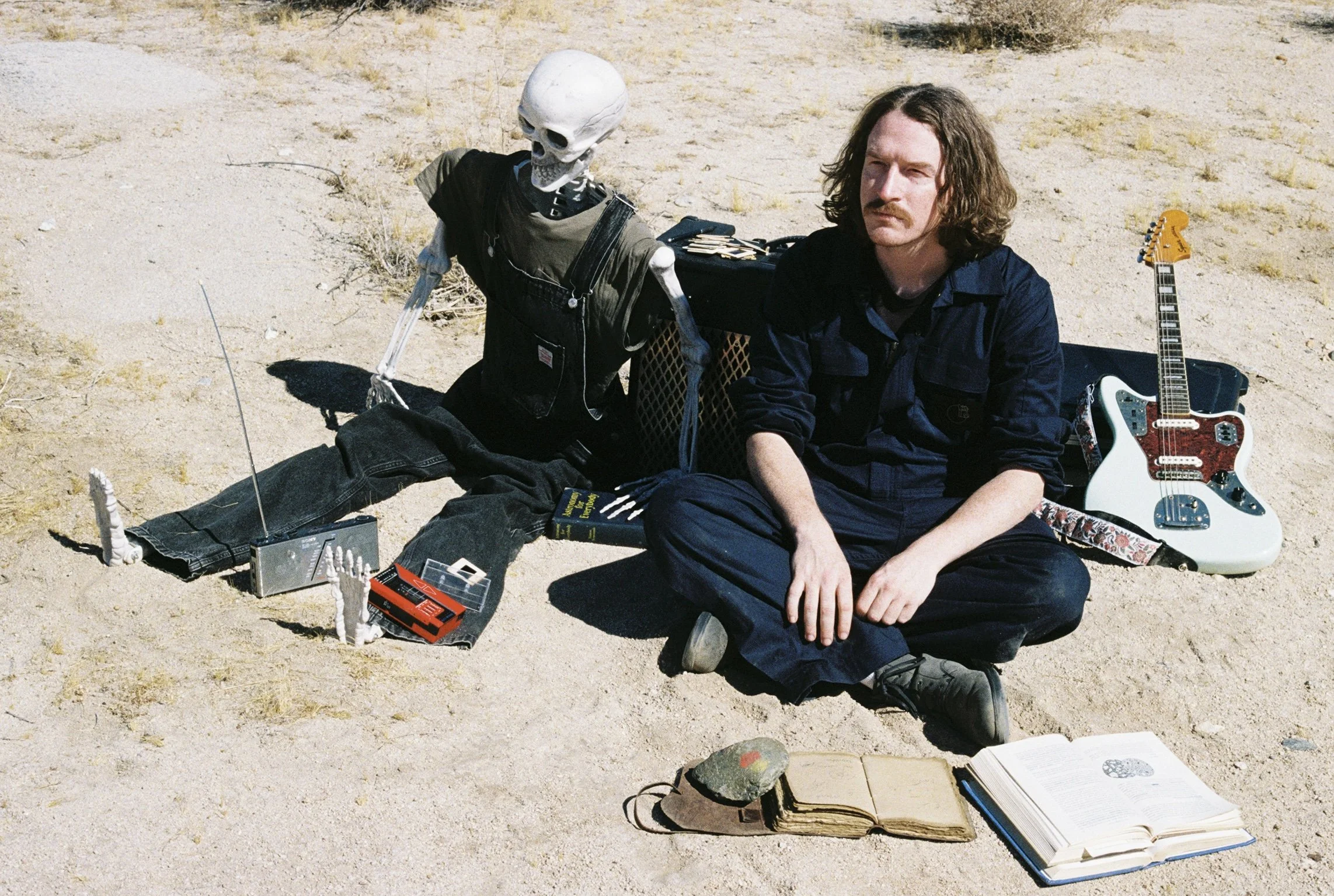 Accompanying the single is a visually arresting music video shot in the stark, otherworldly landscapes of Joshua Tree National Park. The video mirrors the song’s themes of existential searching, featuring a protagonist wandering the desert with mysterious books and cryptic notes. Along the way, he’s joined—or haunted—by a skeleton, perhaps a reflection of his past or an ominous glimpse into his future. It’s a surreal, symbolic journey that perfectly complements the song’s restless energy.